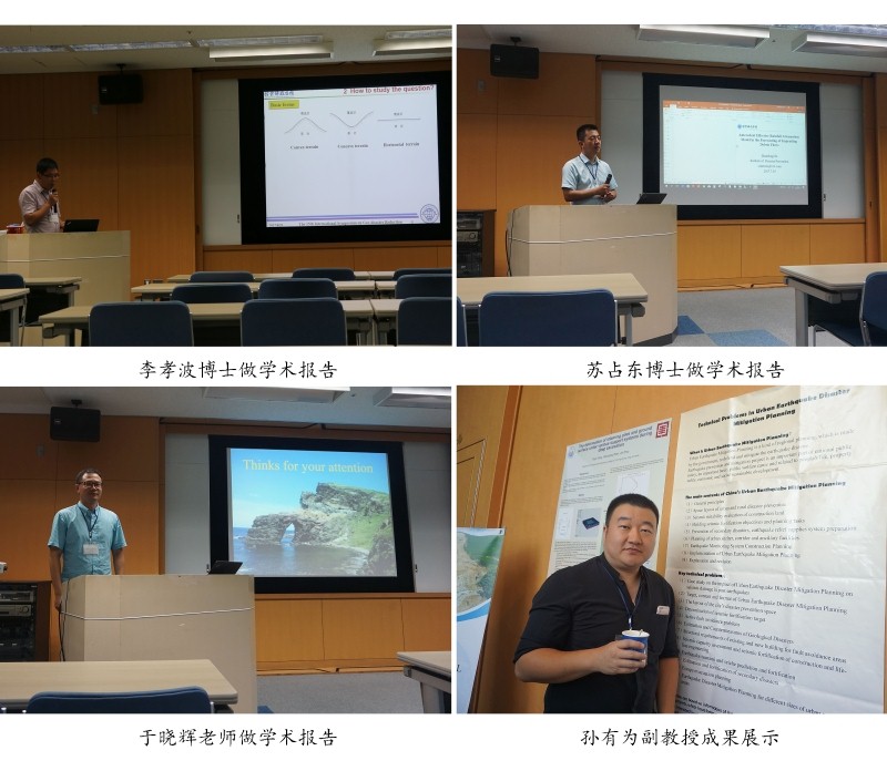 李孝波博士、苏占东博士、于晓辉老师分别以《Effect of bedrock terrain on seismic ground motion》、《Antecedent effective rainfall attenuation model in the forecasting of impending debris flows》、《Gu Dian fault: triggering seismic fault of MS7.0, in 1119 AD, northeast China》为题在青年论坛中介绍了相关研究成果,孙有为副教授、戴训也老师分别以《Technical problems in urban earthquake disaster mitigation planning》、《Late-Quaternary Paleoearthquake Analysis of the Quanquanzi Segment of Fukang Fault, in Xinjiang》为题在海报展示中介绍了相关研究成果。除此之外,学院教师还积极与其他参会代表进行学术互动,并在地震诱发滑坡机理、滑坡灾害防治、活动断层探测、减轻地质灾害新技术以及九寨沟地震地质灾害等方面进行了广泛交流和讨论。