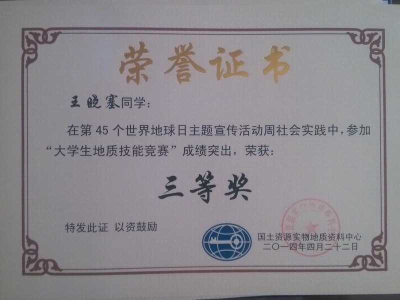 4月20日,由国土资源实物地质资料中心举办、kaiyun官方登录入口和华北科技学院协办的的首届实物地质技能竞赛在地质实物资料中心举行。竞赛分为矿物手标本鉴定、岩石手标本鉴定、岩石薄片镜下鉴定、大型矿石标本鉴定、古生物标本鉴定五部分。此次参赛的学校有中国地质大学(北京)、北京大学、kaiyun官方登录入口、华北科技学院。kaiyun官网2011级资源勘查工程专业和地质学专业18名同学参加了该比赛,经过一个星期的激烈角逐,kaiyun官网1150133班马慧如同学获得二等奖、1150131班王晓赛同学获得三等奖、另有朱洪建等10人获得优秀奖。