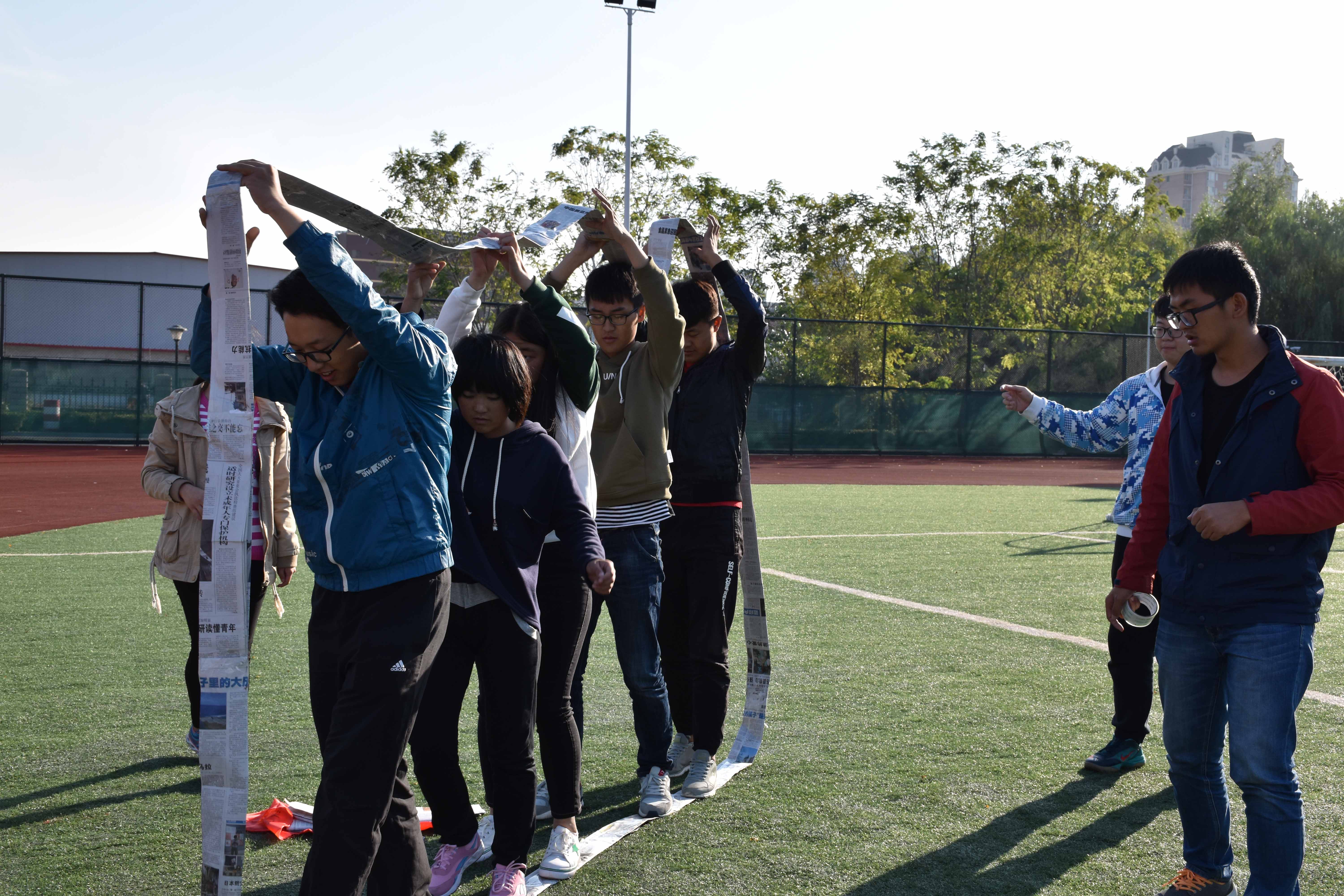 2016年10月9日下午,我系团总支学生会在北校足球场组织开展了2016级新干事素质拓展活动,团总支学生会主席团成员、各部部长及副部长、全体新干事参加本次活动。