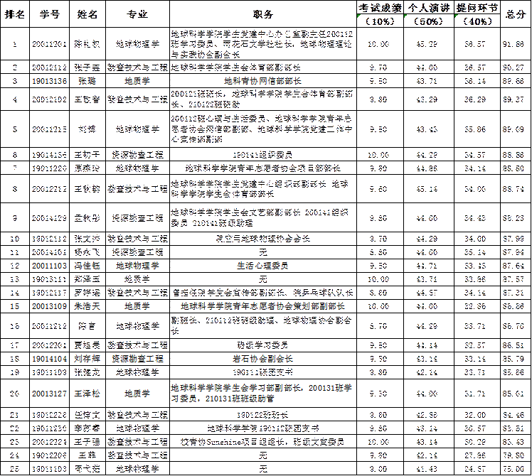 根据学院《kaiyun官方登录入口学生党员发展工作实施细则(试行)》规定,按照学院党总支的安排,2022年5月5日组织党员发展对象进行了汇报答辩,答辩成绩现予以公示: