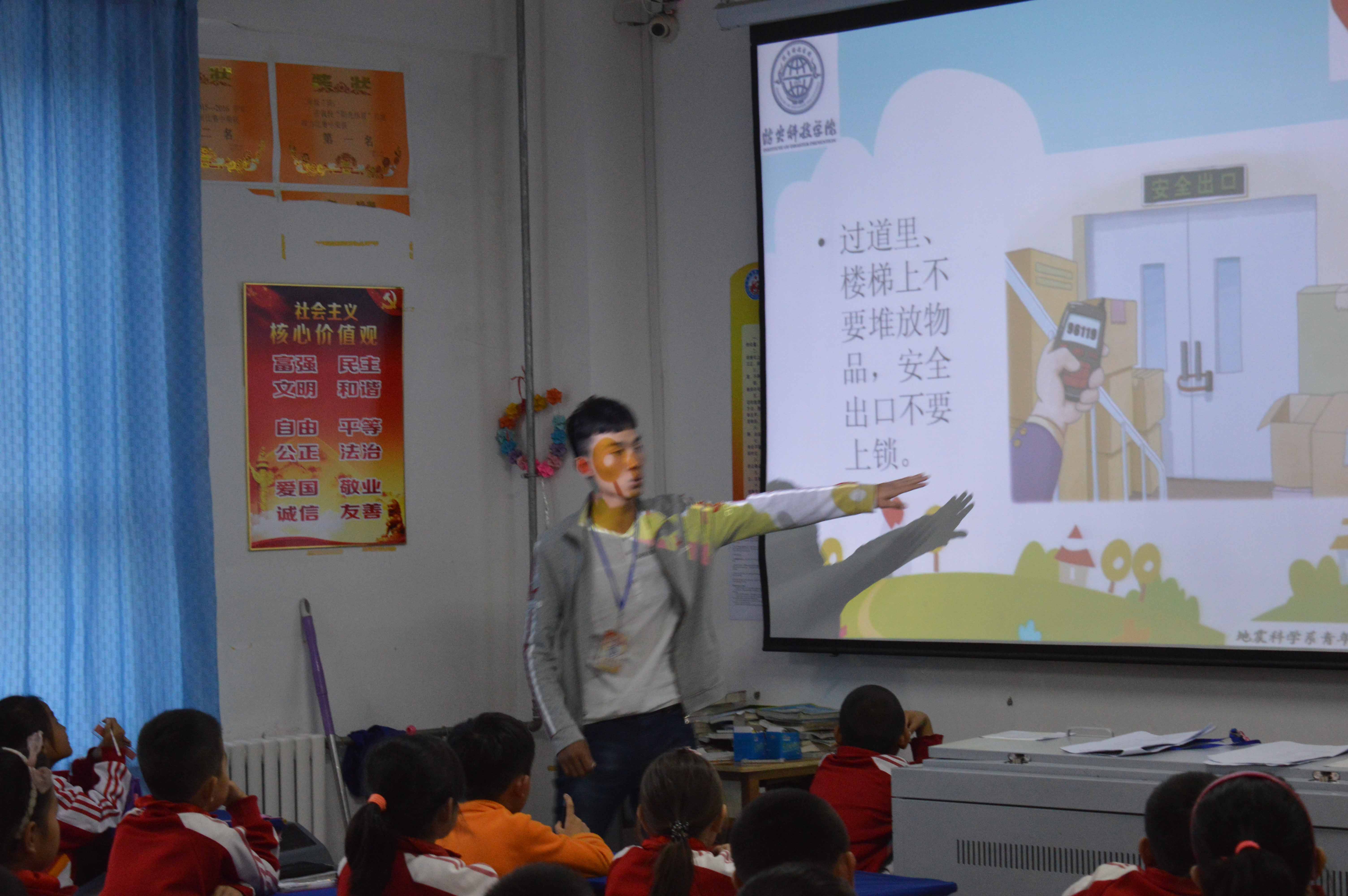 2016年10月20日,在三河市第八小学的邀请下,地震科学系组织青年志愿者到三河八小开展防火应急疏散演练活动。地震科学系青年志愿者和三河市第八小学全体师生参加了本次演练。